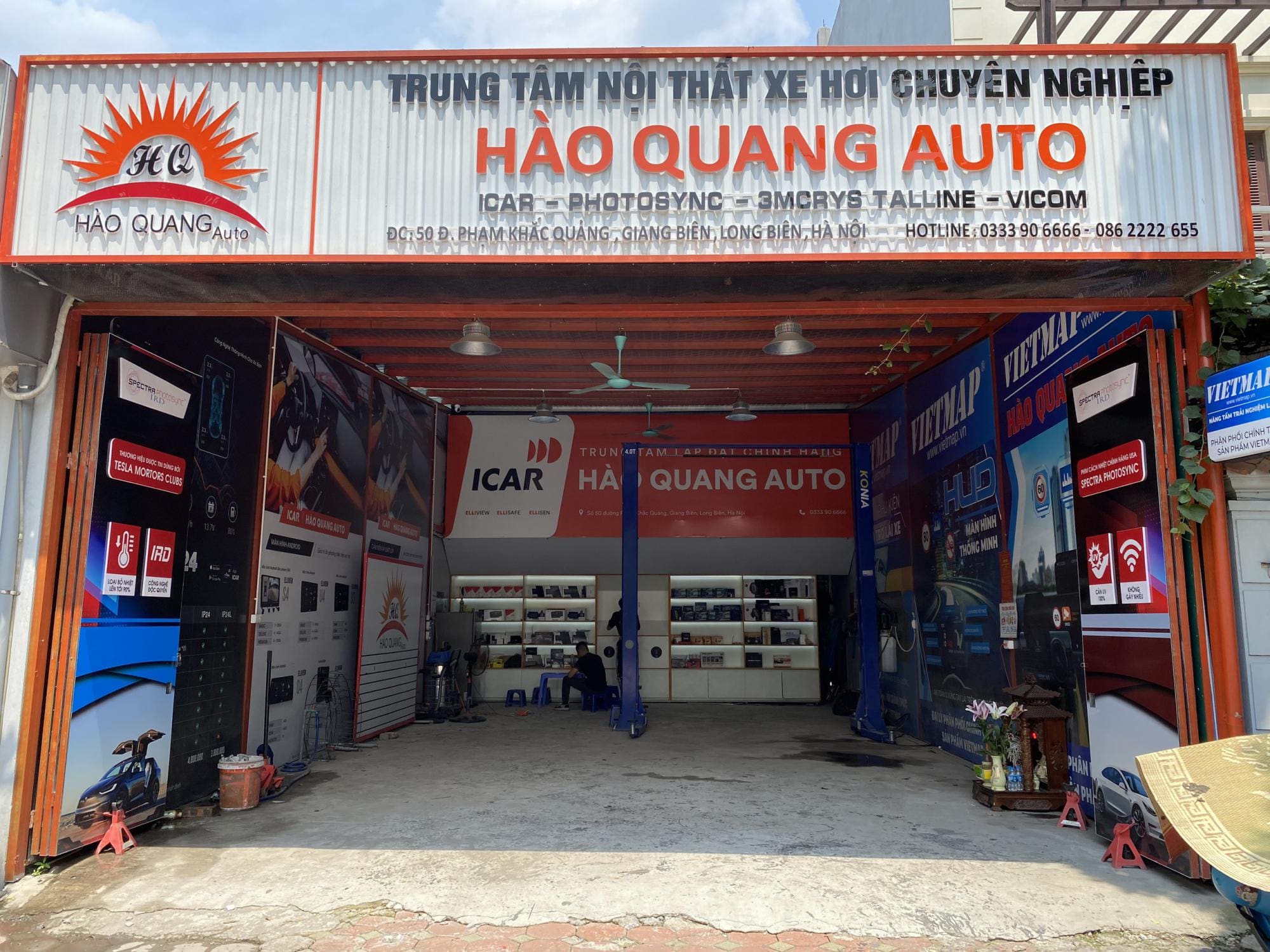 Hào Quang Auto là một garage và xưởng chăm sóc ô tô chuyên nghiệp đặt tại Hà Nội. Với hơn 10 năm kinh nghiệm trong ngành chăm sóc và nâng cấp xe, Hào Quang Auto đã khẳng định vị thế của mình qua việc cung cấp các dịch vụ toàn diện như: dán phim cách nhiệt, phủ ceramic bảo vệ sơn, cách âm chống ồn, nâng cấp nghe nhìn, lắp camera hành trình và các phụ kiện công nghệ ô tô. Đội ngũ kỹ thuật viên tại đây được đào tạo bài bản, sử dụng thiết bị hiện đại và linh kiện chính hãng, giúp mỗi chiếc “xế yêu” ra khỏi xưởng đều đạt chuẩn về cả thẩm mỹ và kỹ thuật.